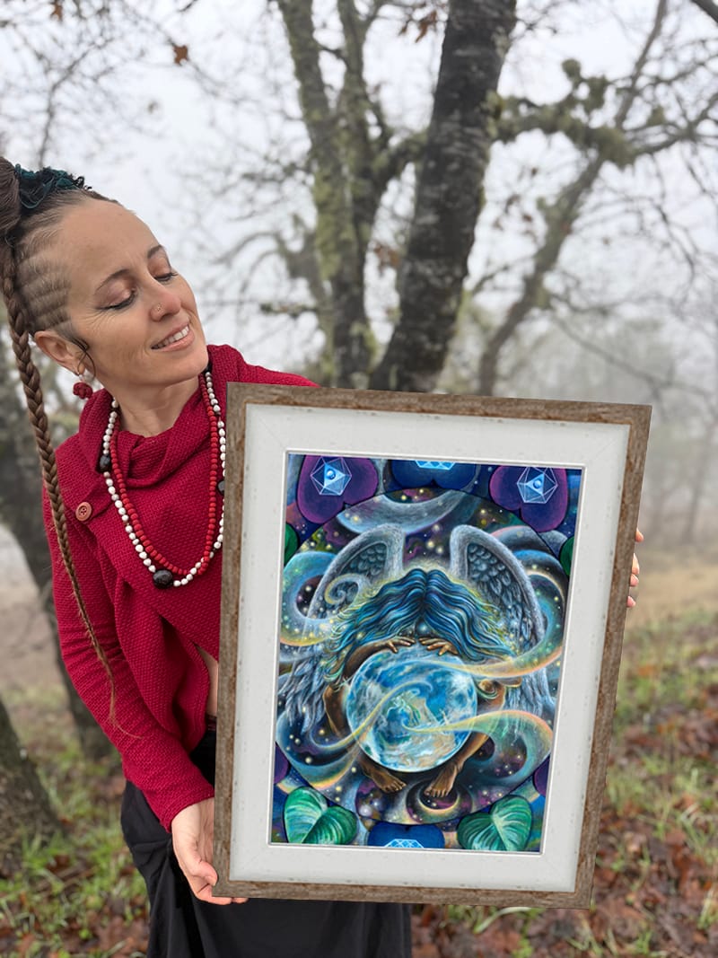 Ishka Lha (pronounced ee-shka-la) is an internationally celebrated visionary artist, musician, ritualist, and mentor. She grew up on a ranch in the rolling hills of northern California. At university, she earned a Professional Bachelor’s degree in Architecture with an emphasis on natural building and eco-village design, and her art practice has been her main profession for many years.