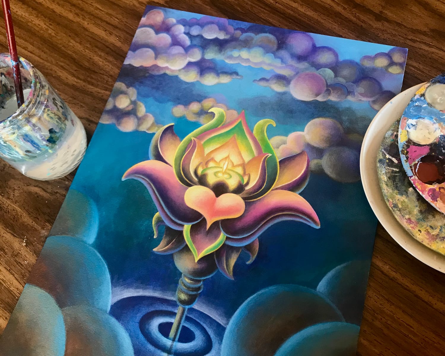 I am the proud owner of one of Ishka's original paintings, and I have it placed in my bedroom where I can see it as I wake and then as I finish my day. It was a suprise commission from my husband, and there was so much love and intention that went into this. I can feel the power every time I look at it. Thank you, Ishka, for your talent, magic, and sweet inspiration to live for the day and take nothing for granted.
