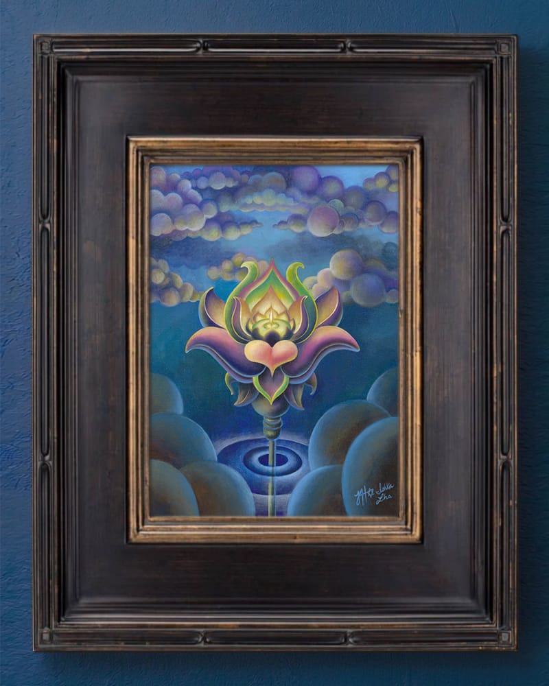 I contacted my favorite artist, Ishka Lha, to see if she might be willing to bring a series of interrelated visions I had to life by painting some of the elements for me. The resulting painting is quite literally a dream come true. I’m forever grateful, and happy to know that I and many others will continue to receive darshan from this beautiful and trans-portative work of art in the years ahead. The money spent on this was truly one of the best investments I’ve ever made.